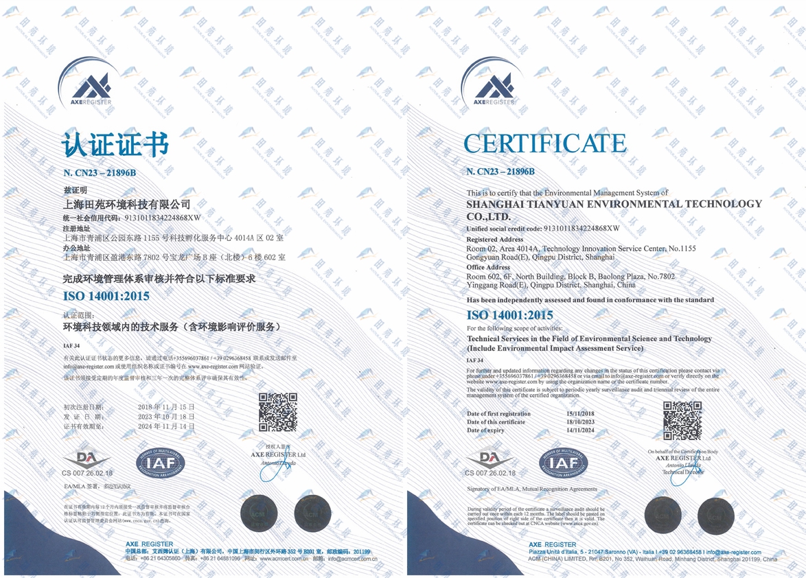 《中國環(huán)境服務認證證書【環(huán)保管家一級】》